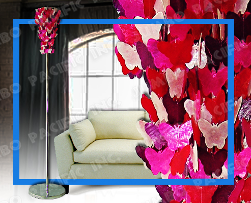 BESCHRIJVING: de spaanders van 3 lagenCapiz in rood, roze, wit en de vormontwerp van de fuschiavlinder met elektrische montage.